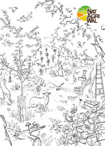 Vous avez un verger et vous désirez sensibiliser le grand public passant à proximité ? Retrouverez-vous tous les atouts et les éléments naturels mentionnés sur le dessin ? Ou peut-être, en cette période de vacances, aurez-vous simplement envie de vous approprier les couleurs du pré-verger de Natagriwal ? Bon amusement !