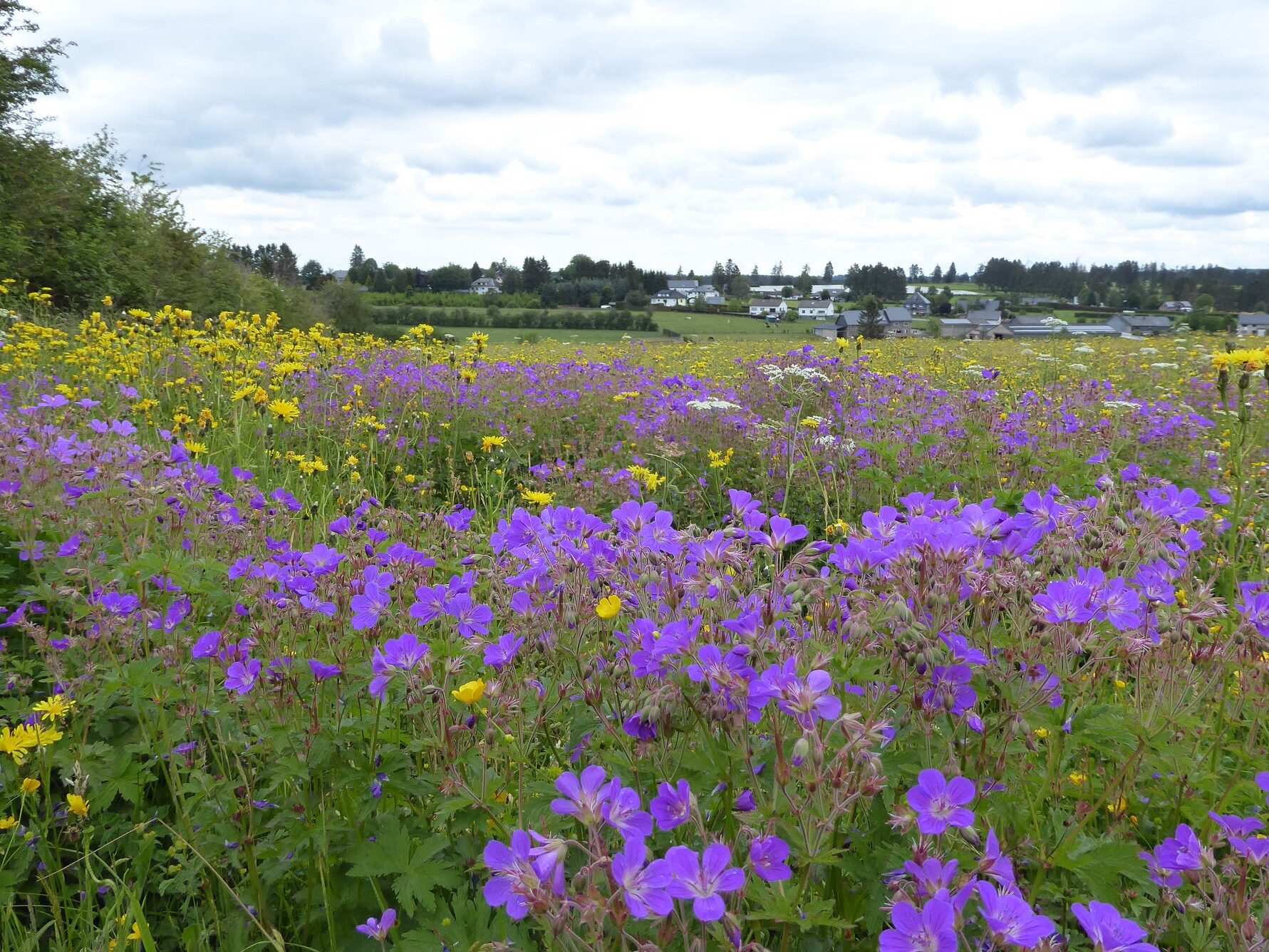 Les prés maigres de fauche sont des habitats d’intérêt communautaire : habitat 6510 « prairies de fauche mésophiles » et habitat 6520 « prairies de fauche submontagnardes » au-delà de 550 m d’altitude.