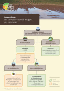 En tant que commune, vous bénéficiez d’aides pour vous protéger des potentielles inondations: vous pouvez contacter directement GISER (giser@spw.wallonie.be) qui établira un rapport d’expertise au niveau du bassin versant (incluant les zones urbaines, agricoles, cours d’eau,…).